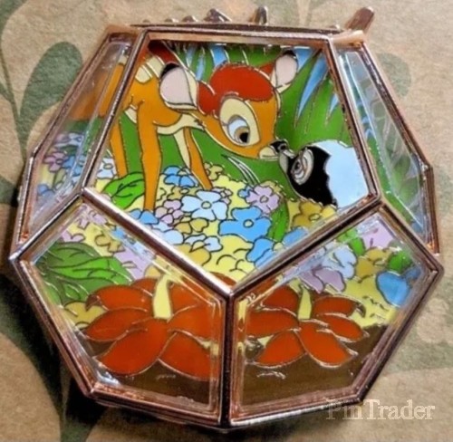 | In an open terrarium design, this pin features Bambi and Flower nose to nose in a field of yellow, blue, white, and pink flowers. This pin has glass panels on all sides except the top. Magic in the details • Created especially for the Disneyland Resort and Walt Disney World • Limited Edition of 4000 • Enameled cloisonné • Terrarium glass design • 3D design • Disney Pin Trading 2021 backstamp • Mickey icon pinbacks • Comes on custom card • First in a series of 12 in this monthly series • Metal / enamel • Imported |