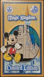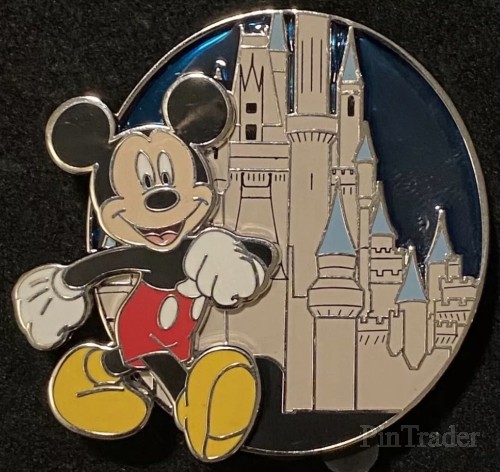 | Mickey Mouse is strolling by the castle at the Magic Kingdom. |