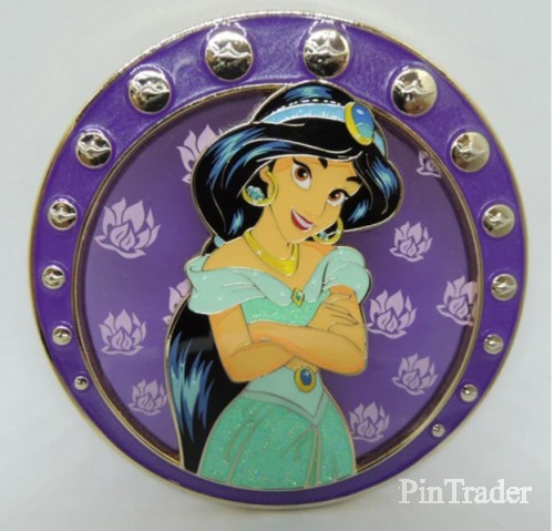 | Description from Pulse Gallery UK: NEO NOUVEAU - JASMINE Our newest additions to our Neo Nouveau collection are here! Jasmine (Aladdin) is a beautiful large pin featuring a translucent purple background, pin on pin design and pearlescent and glitter effects. • Artist: Masey • Size: 3 1/4" • Edition Size: 300 Comes with backing card as certificate of authenticity and pin number stamped on the rear of the pin. This pin is also sold in a set of 5 pins titled "Neo Nouveau 2.0 Complete Collection." It is unknown how many pins are sold in the set, versus separately. |