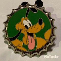 | Pluto the yellow dog is featured from neck up. Pluto's pink toungue is hanging/sticking out. You can see Pluto's green collar. The pin background is green. The pin base is cut like a soda bottle cap. Metal base is silver. Back: - 1 post - 2 nubs - 3 boxes: DPT logo, copyright, LE 250 One of fifteen (15) pins in a mystery box set sold at WDW. Each pin features Disney character(s) from the waist up. Edition size varies from pin to pin in the set (250 to 1000). Two pins per box. |
