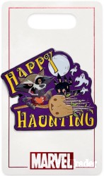 | ''Happy haunting'' is in season with this Halloween-themed pin featuring Rocket Raccoon and Baby Groot, inspired by Marvel's Guardians of the Galaxy films. Magic in the details * Rocket and Groot pin * Halloween design * ''Happy Haunting'' banner * Enameled cloisonné * Nickel finish * Pin backs * Comes on Marvel logo card * Inspired by Marvel's Guardians of the Galaxy The bare necessities * Metal / enamel * Approx. 1 3/4'' W * Imported |