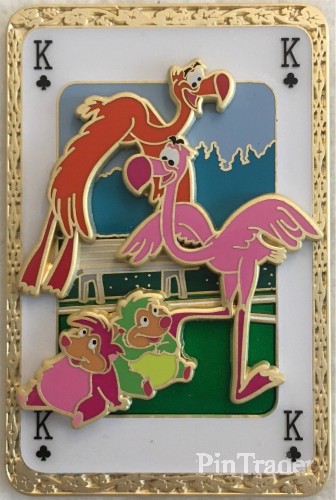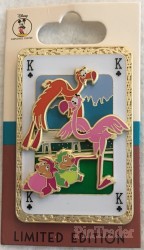 | Two flamingos (pink and orange) and two hedgehogs (hot pink and green), resting from a game of croquet, are featured on this pin, in the shape of a playing card, with the suit of the King (K) of Clubs. Description from Shop Disney Store website: Flamingos and Hedgehogs Pin – Alice in Wonderland – Disney Employee Center – Cast Member Exclusive – Limited Edition You'll lose your head over this playing card-themed Cast Member-exclusive pin featuring the croquet Flamingos and Hedgehogs from Walt Disney's animated classic, Alice in Wonderland (1951). Magic in the details • Created especially for Disney Employee Center • Cast Member Exclusive • Limited Edition of 250 • Features two Flamingos and two Hedgehogs • ''Playing card'' frame • Enameled cloisonné • Pin-on-pin design • Laser print elements • Goldtone finish • Disney Employee Center backstamp • Mickey icon pin backs • Comes on card • One of five pins in this series, each sold separately • March Hare and Dormouse Pin • Dodo and Oysters Pin • Caterpillar and Dinah Pin • Cheshire Cat and White Rabbit Pin • Inspired by Walt Disney's Alice in Wonderland (1951) The bare necessities • Metal / enamel • Approx. 2 1/2'' H x 1 3/4'' W • Imported Item No. 400000169835 NOTE: Although released by Disney Employee Center (DEC), this pin was sold through Shop Disney to cast members due to the COVID-19 pandemic. |