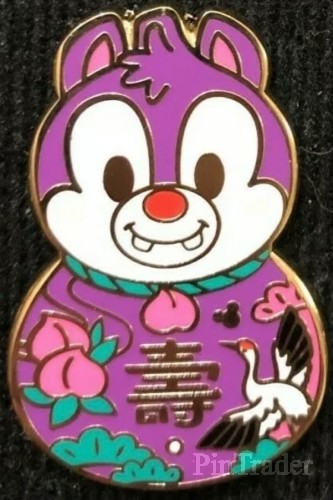 | This pin features Dale with the Chinese character 寿 meaning longevity. This set was originally released at Hong Kong Disneyland. About one week later, the set was released in US Disney Parks. |