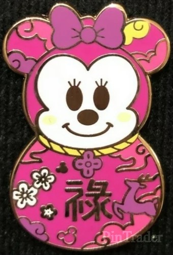 | This pin features Minnie Mouse with the Chinese character 福 meaning good luck or fortune. This set was originally released at Hong Kong Disneyland. About one week later, the set was released in US Disney Parks. |