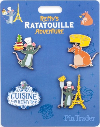 | Our Remy's Ratatouille Adventure Booster Pin Set has four essential ingredients for a well-seasoned pin collection. Remy, Emile, and cheese feature prominently in this gourmand group that celebrates the new ride at Walt Disney World. Magic in the details * Set includes four pins: Remy with stack of food, Emile with cheese wheel, Remy with cheese tower, and ''Cuisine de Remy'' logo * Logo for Remy's Ratatouille Adventure * Enameled cloisonné * Silvertone finish * Disney Pin Trading backstamp * Mickey Mouse icon pin backs * Come on card * Inspired by Remy's Ratatouille Adventure at Walt Disney World The bare necessities * Metal / enamel / PVC * Card: 5 1/2'' H x 2'' W * Imported |