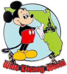 | Celebrate 50 years of The Most Magical Place on Earth with Mickey and this retro-cool pin featuring our iconic mouse and a dangling ''Walt Disney World'' sign. Magic in the details * Pin with dangling element * Features Mickey in front of map of Florida * ''Walt Disney World'' sign hangs by loops below * Enameled cloisonné * Mickey icon pin backs * Disney Pin Trading 2021 backstamp * Comes on card * Part of the Walt Disney World 50th Anniversary Vault Collection The bare necessities * 85% zinc alloy / 12% enamel / 3% PVC * Approx. 1 1/2'' H x 1 3/4'' W * Imported |
