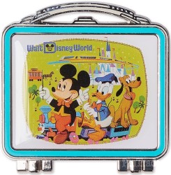 | Enjoy a taste of Walt Disney World when you open up this hinged lunch box pin. Celebrating 50 years of The Most Magical Place on Earth, it features a classic design on the front, which flips open to reveal your current favorite Disney Parks treats. Magic in the details * Hinged lunchbox design pin flips open * Front features Mickey, Pluto, and Donald on train in front of Cinderella Castle * Interior features DIsney Parks treats including Mickey Mouse ice cream bar, popcorn, churros, Mickey Mouse pretzel and Mickey Mouse waffle * Enameled cloisonné * ''Walt Disney World'' text * Mickey icon pin backs * Disney Pin Trading 2021 backstamp * Comes on card * Part of the Walt Disney World 50th Anniversary Vault Collection The bare necessities * 85% zinc alloy / 12% enamel / 3% PVC * Approx. 1 3/4'' H x 1 3/4'' W * Imported |