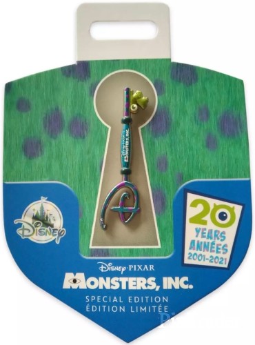 | Disney store and shopDisney celebrate the 20th Anniversary of Disney and Pixar's Monsters, Inc. with this collectible key pin featuring Disney font ''D.'' It will unlock the doorway to a Monstropolis of imagination. Magic in the details * Special Edition * Collectible 3D sculpted key pin with ''D'' icon * Pixar logo silhouette teeth * Includes Monsters, Inc. film logo * Sulley ''fur'' styling * Miniature version of our Monsters, Inc. 20th Anniversary Collectible Key, sold separately * Silvertone finish * Disney Pin Trading 2021 backstamp * Mickey icon pin back * Comes on commemorative keyhole display card * Celebrating the 20th Anniversary of Disney and Pixar's Monsters, Inc. (2001) * Created especially for the Disney store and shopDisney.com The bare necessities * Metal * Pin: 2'' L * Card: 4'' H x 2 1/4'' W * Imported |