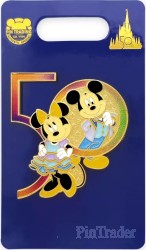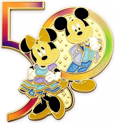 | Join The World's Most Magical Celebration with our Walt Disney World 50th Anniversary pin featuring Mickey and Minnie Mouse in formal party wear. Goldtone finish and iridescent enamels highlight this collectible keepsake. Magic in the details * Walt Disney World 50th Anniversary pin * Features Mickey and Minnie Mouse * Iridescent ''50'' logo * Enameled cloisonné * Goldtone finish * Mickey icon pin backs * Commemorative backer card with iridescent metallic foil accents * Part of the Walt Disney World 50th Anniversary Celebration Collection The bare necessities * Metal / enamel / PVC * Pin: approx. 1 3/4'' H x 1 3/4'' W * Imported |