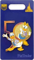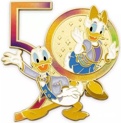 | Join The World's Most Magical Celebration with our Walt Disney World 50th Anniversary pin featuring Donald and Daisy Duck in formal party wear. Goldtone finish and iridescent enamels highlight this collectible keepsake. Magic in the details * Walt Disney World 50th Anniversary pin * Features Donald and Daisy Duck * Iridescent ''50'' logo * Enameled cloisonné * Goldtone finish * Mickey icon pin backs * Commemorative backer card with iridescent metallic foil accents * Part of the Walt Disney World 50th Anniversary Celebration Collection The bare necessities * Metal / enamel / PVC * Pin: approx. 1 3/4'' H x 1 3/4'' W * Imported |