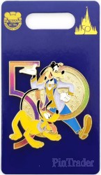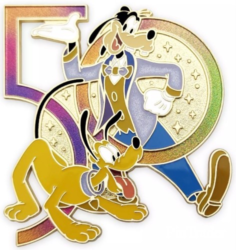 | Join The World's Most Magical Celebration with our Walt Disney World 50th Anniversary pin featuring Goofy and Pluto in formal party wear. Goldtone finish and iridescent enamels highlight this collectible keepsake. Magic in the details * Walt Disney World 50th Anniversary pin * Features Goofy and Pluto * Iridescent ''50'' logo * Enameled cloisonné * Goldtone finish * Mickey icon pin backs * Commemorative backer card with iridescent metallic foil accents * Part of the Walt Disney World 50th Anniversary Celebration Collection The bare necessities * Metal / enamel / PVC * Pin: approx. 1 3/4'' H x 1 3/4'' W * Imported |