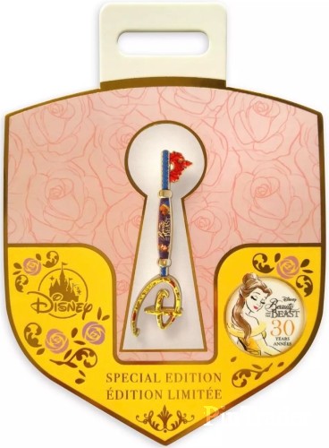 | Disney store and shopDisney celebrate the 30th Anniversary of Disney's classic Beauty and the Beast with this collectible key pin featuring Disney font ''D.'' It's the key to unlocking your heart. Magic in the details * Special Edition * Collectible, 3D sculpted key pin with ''D'' icon * Fantasyland Castle silhouette teeth * Includes Belle and Beast character art plus golden film logo * Enchanted rose filigree * Miniature version of our Beauty and the Beast 30th Anniversary Collectible Key, sold separately * Goldtone finish * Disney Pin Trading 2021 backstamp * Mickey icon pin backs * Comes on commemorative keyhole display card * Celebrating the 30th Anniversary of Disney's animated classic Beauty and the Beast (1991) * Created especially for Disney store and shopDisney.com The bare necessities * Metal * Pin: 2'' L * Card: 4'' H x 2 1/4'' W * Imported |