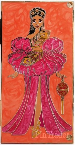 | Designed by Disney artist Mark Monterroso, this stunning limited release Jasmine pin features the Aladdin princess rendered in a colorful palette, plus a clear hinged door design on the front. Part of the Disney Designer Collection. Magic in the details * Limited Release * Hinged pin design with partial clear glass door and hard enamel infill * Jasmine art designed for Disney by Mark Monterroso * Artist signature on back * Colorful soft enamel infill * Goldtone metal * Official Disney Parks Pin Trading 2022 backstamp * Mickey icon pin backs * Inspired by Aladdin (1992) * Part of the Disney Ultimate Princess Collection * Part of the Disney Designer Collection The bare necessities * Zinc / enamel * 3'' H x 1 1/2'' W * Imported |