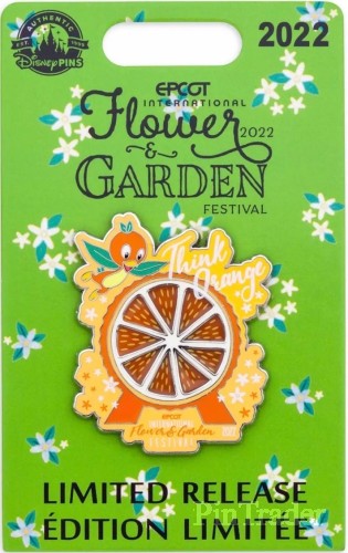| The Orange Bird thinks-up a sweet collector's treat with this cloisonné pin-on-pin design for the EPCOT International Flower and Garden Festival 2022. Magic in the details * Limited Release * Pin-on-pin design featuring Orange Bird * ''Think orange'' text * EPCOT International Flower and Garden Festival 2022 logo * Enameled cloisonné * Nickel finish * Disney Pin Trading 2022 backstamp * Mickey icon pin backs * Comes on commemorative card * Part of the EPCOT International Flower and Garden Festival 2022 Collection The bare necessities * Metal (zinc alloy) / enamel * 1 3/4'' H * Imported The festival ran from March 2, 2022 through July 4, 2022. |