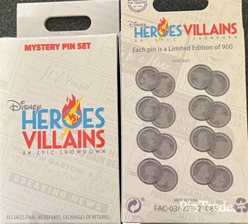 | The Heroes vs Villains pin event was held virtually on December 4, 2021. Pins from the event were shipped prior to the event. Two pins per box. |