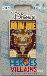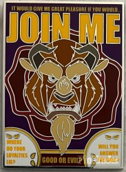 | • Featuring Beast written on top “It would give me great pleasure if you JOIN ME” • Bottom center is written “Good or Evil” • On bottom one side is written ““Where do your loyalties lie?” and on the other “Will you answer the call?” • Back of pin- 2 pin post, Disney Heroes Villains an Epic Showdown Logo, Pin trading Logo, Limited Edition of 2000, FAC#, ©Disney and Made in China. • Artist Jes Willis • Dimensions: 1.45” x 2.00” • Item #21 The Heroes vs Villains pin event was held virtually on December 4, 2021. Pins from the event were shipped prior to the event. |
