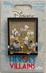 | • Featuring Multi-Plane, shadow box cast from DuckTales • Back of pin- 2 pin post, Pin trading Logo, Disney Heroes Villains an Epic Showdown Logo, Limited Edition of 1000, FAC#, ©Disney and Made in China. • 3 Layer Pin on pin on pin, Clear Acetate, Stained Glass • Artist Jes Willis • Dimensions: 1.58” x 2.00” • Item #15 The Heroes vs Villains pin event was held virtually on December 4, 2021. Pins from the event were shipped prior to the event. |