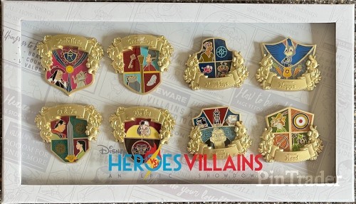 | The Heroes vs Villains pin event was held virtually on December 4, 2021. Pins from the event were shipped prior to the event. What's in a name? Featuring some of the most well known Heroic and Villainous family names, this box set features iconic family sigils. Artist: Jes Willis Dimensions: 2.00" x 1.80" Features: • Pin on Pin • 3D Sculpted top pins • Translucent fills • Low relief sculpting on base pin • RSP#50 |