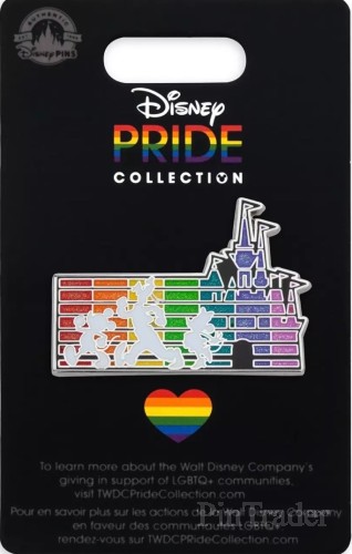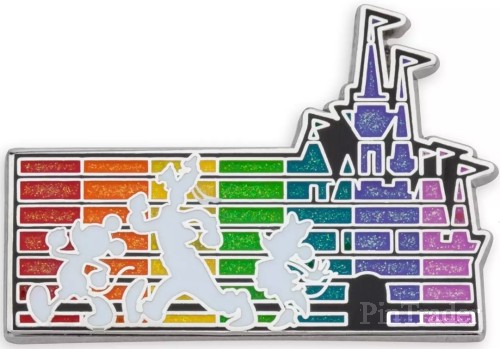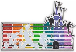 | Mickey, Goofy, and Minnie are silhouetted against a background featuring the Fantasyland Castle in a spectrum of glittering rainbow colors on this pin. It's one you will wear with pride on your next visit to the Disney Parks. Magic in the details * Enameled cloisonné * Characters include Mickey, Goofy, and Minnie * Glitter detailing * Nickel finish * Disney Pin Trading 2022 backstamp * Mickey icon pin backs * Comes on card * Part of The Disney Pride Collection * The Walt Disney Company will be donating all of our profits from The Disney Pride Collection sales now through June 30, 2022 to support LGBTQIA+ youth and families. For more information about organizations Disney is funding, visit TWDCPrideCollection.com. The bare necessities * 87% zinc alloy / 10% resin / 2% PVC / 1% brass * 1 1/5'' H x 1 3/4'' W * Imported |