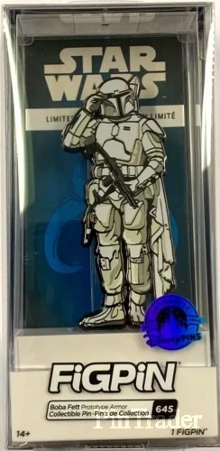| Stand out with FiGPiN, the ultimate pin collectible! The world is your stage! Share and display your FiGPiNs anywhere, anytime through our innovative pin backer. This Boba Fett in Prototype Armor FiGPiN can be displayed like your most coveted figure or worn as your favorite accessory. Pin to your favorite bag or jacket, or simply display on your desk. Magic in the details * Limited Release * Boba Fett Prototype Armor FiGPiN collectible pin * Enameled cloisonné * Nickel finish * Stands up on a FiGPiN soft rubber backer or FiGPiN action post, included * Encased in a clear poly-carbonate display box with a plastic base * Includes character-specific background card * All FiGPiNs include a laser engraved, alphanumeric serial number on the back * FiGPiN Number 645 * With the FiGPiN App you can unlock the serial number to discover the rarity of your FiGPiN and begin earning points. Available now for Android and iOS devices * Inspired by the Star Wars saga * Part of the Star Wars Series The bare necessities * Ages 14+ * Pin: metal (zinc alloy) / hard enamel * Backer/box: plastic (polycarbonate / acrylonitrile butadiene styrene) * Pin: approx. 3'' H * Box: approx. 5'' H x 2 1/2'' W x 1 1/4'' D * Imported |