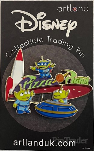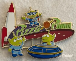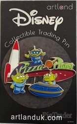 | Description from Pulse Gallery UK website: This pin is one of our favourite of the year! It features the three little Aliens from Toy Story in their space gear on top of the pizza Planet sign. This is a pin on pin design with pearlescent features in the background of the Pizza sign and transparent enamel in the glass of the building. Edition: 125 Size: 3.5" x 2.7" Edition number stamped on the back Comes with a Certificate of Authenticity |