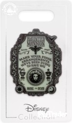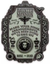 | Make your final arrangements–you've been dying to have this The Haunted Mansion glow-in-the-dark pin for your very own. Rest in peace by adding it to your collection while you can. Magic in the details * Glow-in-the-dark ''The Haunted Mansion'' plaque with fancy filigree * Features Madame Leota * ''Make your final arrangements. We've been dying to have you.'' text * Enameled cloisonné * Printed elements * Antiqued silvertone finish * Disney Pin Trading 2022 backstamp * Mickey icon pin backs * Comes on card * Inspired by The Haunted Mansion attraction at Disneyland and Walt Disney World's Magic Kingdom The bare necessities * Metal (zinc alloy) / enamel / screen print * Approx. 1 3/4'' H x 1 1/4'' W * Imported |