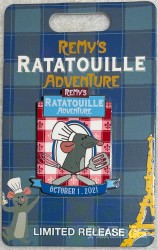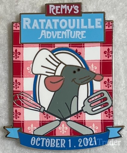 | This pin celebrates the opening day of Remy's Ratatouille Adventure ride at EPCOT at Walt Disney World. |