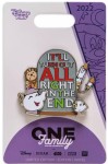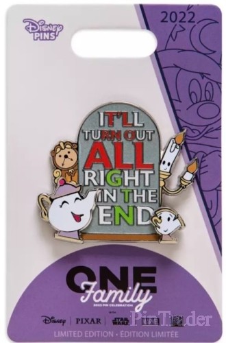 | Wisdom of the ages is conveyed in our Family Motto series, part of the Disney One Family Pin Celebration 2022. The Beast's enchanted servants truly believe ''It'll all turn out right in the end'' on this pin-on-pin design. Magic in the details * Limited Edition of 300 * Completer pin * Pin-on-pin design * Includes Mrs. Potts, Chip, Lumiere, and Cogsworth * ''It'll all turn out right in the end'' text * Enameled cloisonné with translucent accents * Nickel finish * Disney Pin Trading 2022 backstamp * Mickey icon pin backs * Artist: Jes Willis * Comes on Disney One Family 2022 card * Inspired by Disney's Beauty and the Beast (1991) * Part of the Family Motto series * Part of the Disney One Family Pin Celebration 2022 The bare necessities * Metal (zinc alloy) / enamel * Approx. 1 3/4'' H & W * Imported This event was held at Epcot on August 12th and 13th 2022. Several pins were released later at Disneyland Resort, Shop Disney (US & UK). |