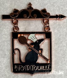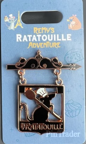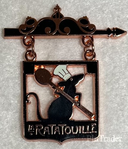 | Released with Remy's Ratatouille Adventure. The pin is shaped like the sign from the end of the movie with open space around Remy holding the spoon. |