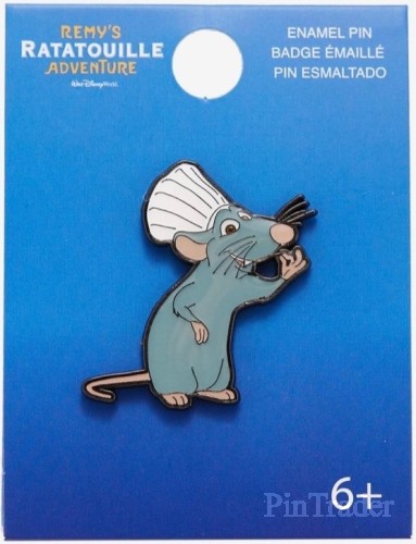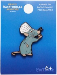 | Description and picture from Box Lunch website: • Chef Remy's cooking up quite the stylish look as this entry for your pin collection! • Inspired by the Disney attraction, Remy's Ratatouille Adventure, • Remy appears wearing his chef's hat A BoxLunch Exclusive! • Enamel; metal • Approx. 1 3/4" • Imported |