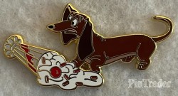 | DSSH - Pin Trader Delight - Dachsie PTD features Dachsie one of the dogs from the Dog Pound in the 1955 Disney film, "Lady and the Tramp." Dachsie is a small, slender dachshund with a reddish brown body and long ears Adding for search purposes: DSF = Disney Soda Fountain DSSH = Disney Studio Store Hollywood This pin was received as a gift when purchasing a Pin Trader Delight sundae at Ghirardelli's Soda Fountain and Disney Studio Store in Hollywood. |