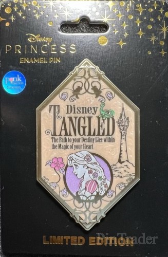 | - 3" Collectible Pin - Brushed Metal Finish - Multicolor Glitter Accents - Pearlized Background Elements - Officially Licensed Disney Product Due to the brushed metal finish, each pin will vary in the "distressing" creating the vintage look and feel. This pin features Rapunzel from Disney's "Tangled." She is at the bottom half of the pin, with her tower in the background. The words "Disney Tangled The Path to your Destiny Lies within the Magic to your Heart" are on the pin. Pascal is also on the pin. Backstamp: (c) Disney Mfg by Monogram I.I. Made in China NOTE: there is nothing on the backstamp that identifies that this pin is a limited edition pin. |