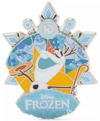 | This limited release pin-on-pin design honours the lovable snowman in royal tribute to Frozen's 10th Anniversary. Dramatic snowflake backdrop and icy, silvery finish evoke the film for fans of all ages. Magic in the details • Celebrating the 10th Anniversary of Disney's Frozen (2013) • Limited release • Features Olaf • Commemorative '10' and 'Frozen' logos • Snowflake backdrop • Enamelled cloisonné • Laser print detailing • Nickel finish • Disney Pin Trading 2023 backstamp • Mickey icon pin backs • Part of the Frozen 10th Anniversary Collection The bare necessities • H3 x W3cm approx. • Made from metal (zinc alloy) and enamel |