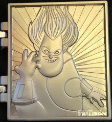 | This is the 6th of a 13 pin collection released once per month leading into the 2016 Pixar Party Pin Trading Event. This pin features a stained glass front of the Pixar Ball logo that hinges open to show a sculpted Syndrome. |