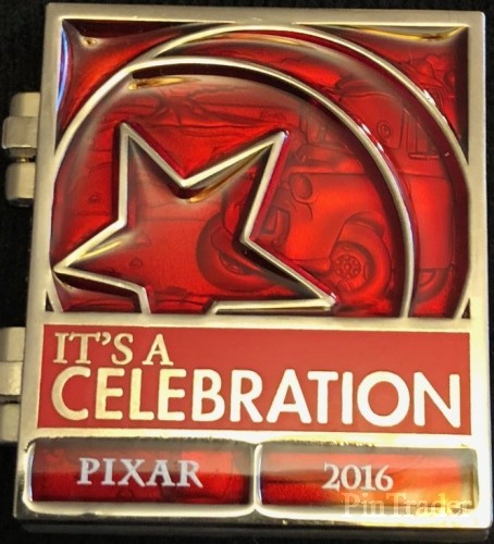 | This is the 7th of a 13 pin collection released once per month leading into the 2016 Pixar Party Pin Trading Event. This pin features a stained glass front of the Pixar Ball logo that hinges open to show a sculpted Mater and Lightning McQueen. |