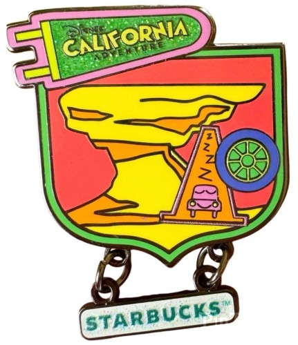 | Starbucks® serves-up a special pairing from The Happiest Place on Earth with this Travel Tumbler and Mystery Pin Blind Pack set. Matching ''sticker'' style graphics inspired by attractions in Disney California Adventure at Disneyland Resort decorate both the tumbler's translucent, double-wall exterior and two companion pins, randomly selected out of eight possible designs in the series. Enjoy a Starbucks® treat while trading pins in the Disney Parks. It's a match made of magic! Magic in the details * Created especially for Disneyland Resort Travel Tumbler: * Clear travel tumbler with translucent liner * Double-wall exterior * Screen art Disney California Adventure logo and ''sticker'' style attractions graphics on two levels * Glitter accents * Starbucks® logo * Twist tight cap with straw hole and silicone seal ring * Matching straw with flared bottom * Comes with Disney Pins Mystery Pin Blind Pack inside * One of six Starbucks® Travel Tumblers in the Disney Parks Series * Part of the Disney | Starbucks® Collection Mystery Pins: * Each pack contains two randomly selected pins from eight overall designs in the Starbucks® Disney California Adventure set * You won't know which pins you have until you open the pack * Entire Starbucks® Disney California Adventure series includes Carthay Circle, Pixar Pier, Baymax in San Fransokyo Square, Sebastian in The Little Mermaid–Ariel's Undersea Adventure, Cars Land, Grizzly River Run, Red Car Trolley and Monsters, Inc. Mike & Sulley to the Rescue! * Disney California Adventure logo and ''sticker'' style attractions graphics * Each pin features a dangling Starbucks® logo with chain link * Enameled cloisonné * Laser print detailing * Nickel finish * Disney Pin Trading 2025 backstamps * Mickey icon pin backs * There is a different set of eight pins for each of six Starbucks® Travel Tumblers in the Disney Parks Series, 48 pins in all * Part of the Disney | Starbucks® Collection The bare necessities Travel Tumbler: * Wash thoroughly before first use * Not microwave or dishwasher safe * Hand wash only * Not intended for hot beverages * Do not store or carry carbonated drinks * Not intended to be spill proof or leak proof * Plastic * Approx. 9'' H x 4'' Diameter (11'' H including straw) * Holds approx. 24 oz. * Imported Mystery Pins: * Metal (zinc alloy) / enamel * Pins: approx. 1 3/4'' H x 1 1/4'' W * Imported |