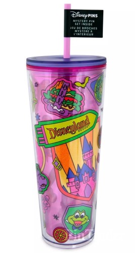 Starbucks® serves-up a special pairing from The Happiest Place on Earth with this Travel Tumbler and Mystery Pin Blind Pack set. Matching ''sticker'' style graphics inspired by attractions at Disneyland Park decorate both the tumbler's translucent, double-wall exterior and two companion pins, randomly selected out of eight possible designs in the series. Enjoy a Starbucks® treat while trading pins in the Disney Parks. It's a match made of magic!