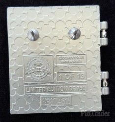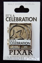 | This is the first of a 13 pin collection released once per month leading into the 2016 Pixar Party Pin Trading Event. This pin features a stained glass front of the Pixar Ball logo that hinges open to show a sculpted Luxo. |