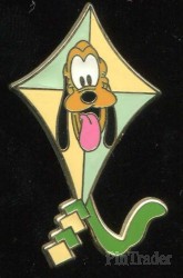 | This pin features a light green & yellow kite with the face of Pluto in the centre |