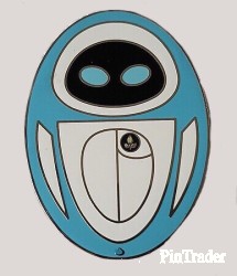 | Eve ( stands for Extraterrestrial Vegetation Evaluator )from Pixar's Wall-E . Like most Cast Lanyard refresh pin from DLP there is a hidden cast member tag, for Eve it's located on the bottom of the pin. |