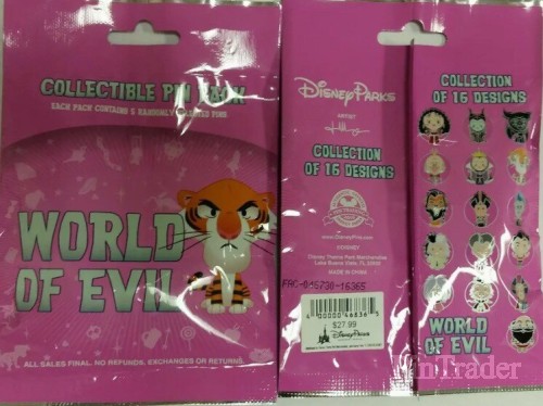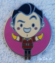 | Gaston out of a serie featuring 16 designs of various Disney Villains as drawn by the artist Jerrod Maruyama . Each is inside a purple circle and is a chibi-style animation. A pin pack contains 5 randomly selected pins. |