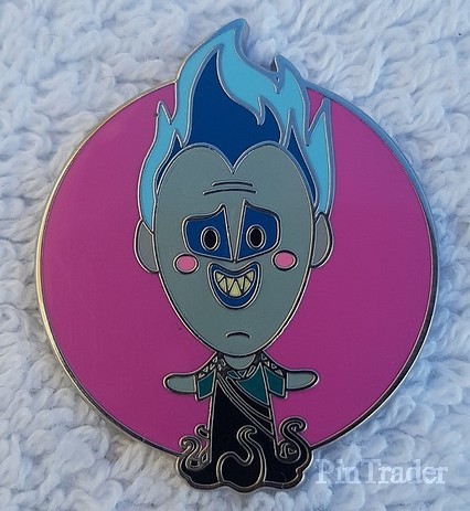 | Hades out of a serie featuring 16 designs of various Disney Villains as drawn by the artist Jerrod Maruyama . Each is inside a purple circle and is a chibi-style animation. A pin pack contains 5 randomly selected pins. |