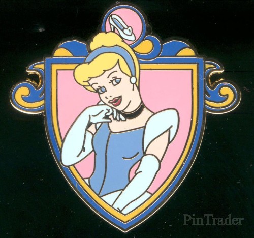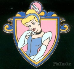 | 2 pins per box This pin features Cinderella in her ball gown. The emblem (above her head) is her glass slipper. |