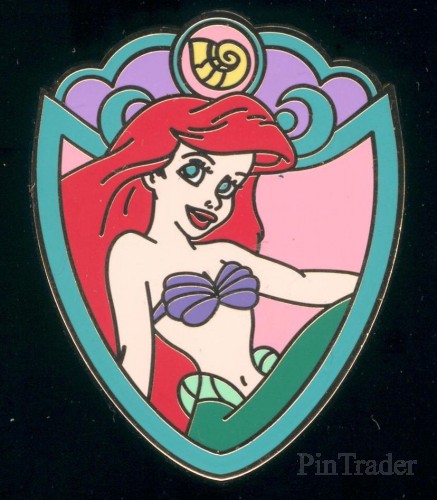 | 2 pins per box This pin features Ariel from Disney's The Little Mermaid. Ariel is in her mermaid form and the emblem (above her head) is a shell. |