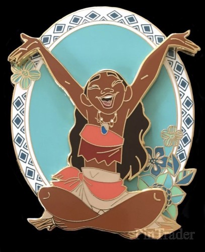 | This pin celebrates the release of Disney's "Moana" in theatres. This pin features Moana, who is seated with her legs crossed and her arms spread high. |