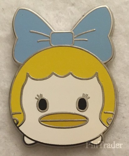 | This booster set features Tsum Tsums of Disney characters as if they are in the Hollywood Tower Hotel. This pin is Daisy with blonde hair and a blue bow. |