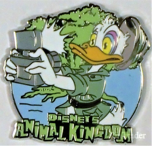 | Donald Duck is standing in front of the Tree of Life, holding a camera in his hands as the flash goes off, blinding him. He is wearing a safari outfit. |