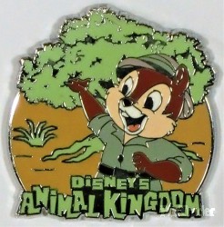 | Chip is standing in front of the Tree of Life, with his right arm extended towards the tree. He is wearing a green safari outfit. |