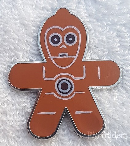 | Star Wars ginger bread mystery collection box hold 2 randomly selected pins out of a serie of 9. A gingerbread coockie made in the form of 3 CPO with white and brown glaze . |