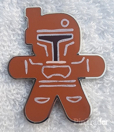 | Starwars ginger bread mystery collection box hold 2 randomly selected pins out of a serie of 9. A gingerbread coockie made in the form of Boba Fett with white and brown glaze . |